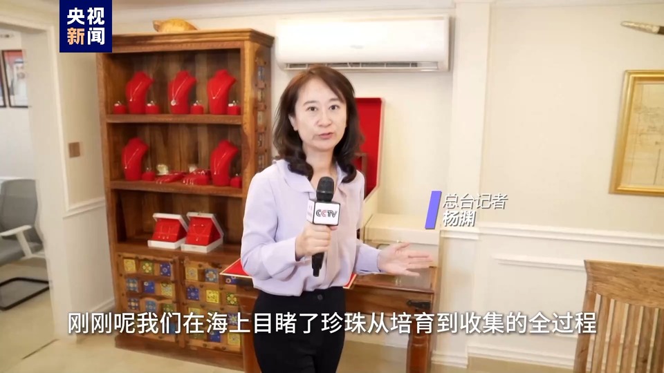 总台记者 杨渊:刚刚我们在海上目睹了珍珠从培育到收集的全过程,从海上珍珠农场收集的珍珠会被集中送到这里,由专业的工作人员进行分拣和测量,最后制成非常精美的珠宝饰品。