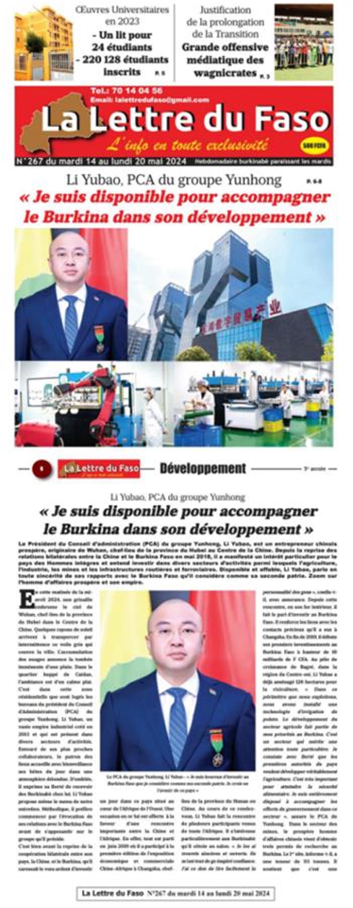 5月14日,非洲布基纳法索一家官方媒体重磅报道了运鸿集团董事局主席李玉保。