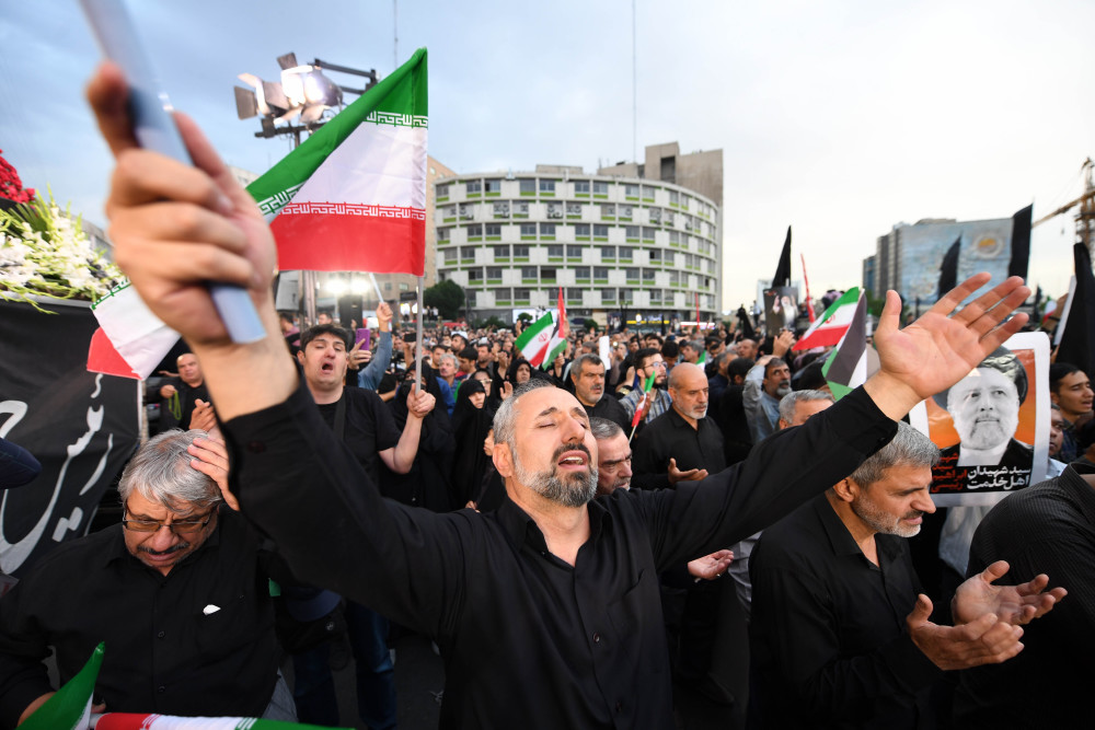 5月20日,在伊朗首都德黑兰,民众悼念直升机坠毁事件遇难者。新华社记者 沙达提 摄
