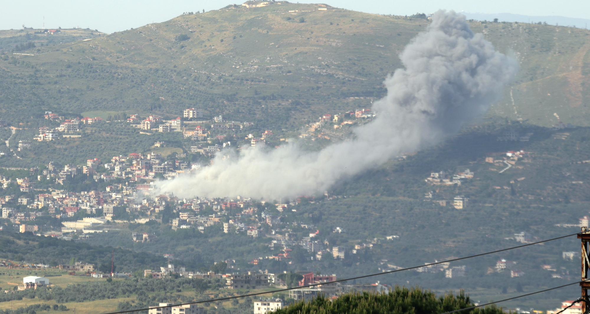 5月10日,在黎巴嫩卡夫尔基拉,浓烟在以军袭击后升起。新华社发(塔希尔·阿布·哈姆丹摄)