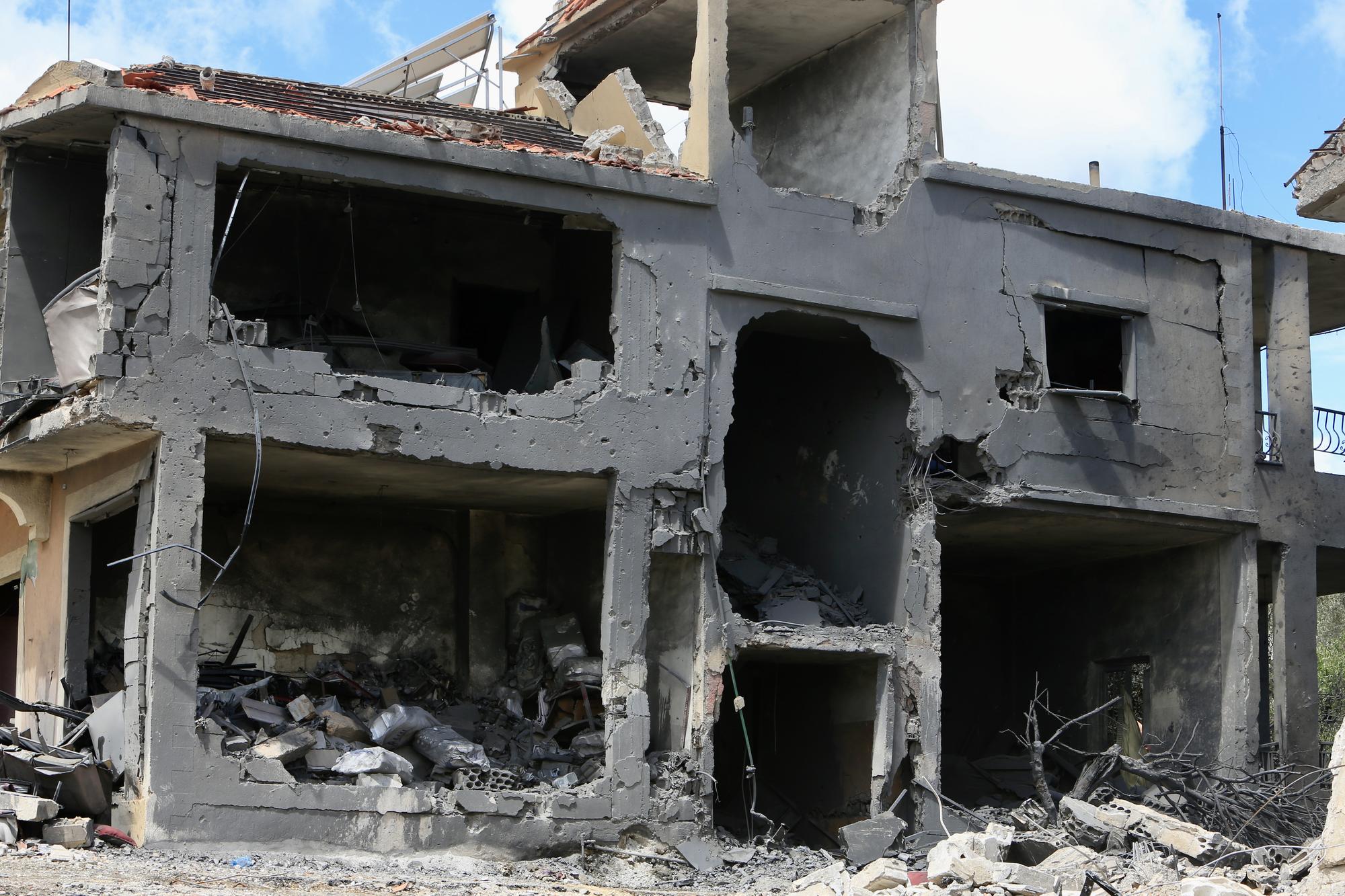 5月6日,在黎巴嫩迈斯杰贝勒,建筑物在以色列袭击中被损毁。新华社发(阿里·哈希绍摄)