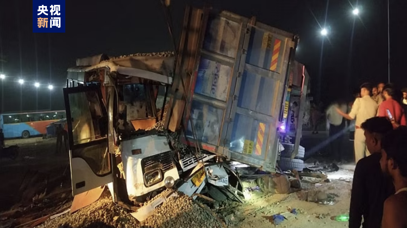 获悉,当地时间5月25日晚,印度北方邦一辆卡车翻车撞上一辆静止的公交车,造成至少11人死亡、10人受伤。(总台记者 石玥)