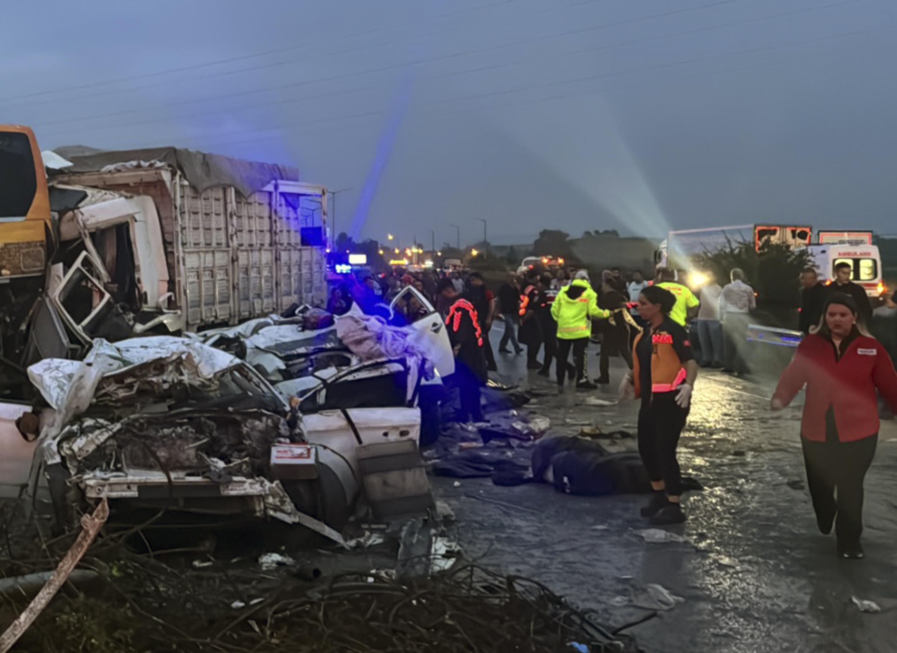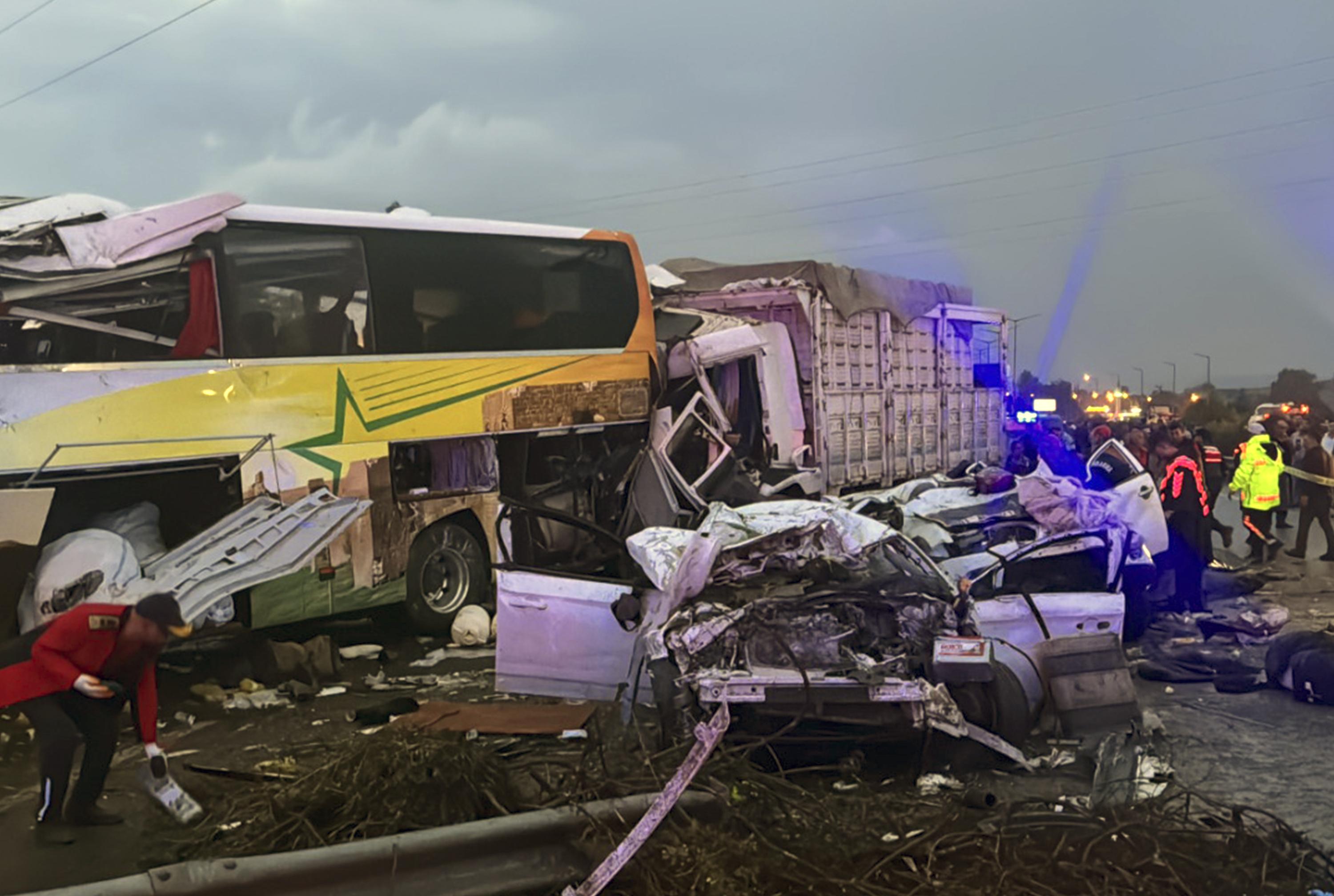 土耳其内政部长耶尔利卡亚26日说,该国南部梅尔辛省当天发生一起交通事故,造成10人死亡、39人受伤。耶尔利卡亚当天在社交媒体上说,一辆从迪亚巴克尔省开往伊斯坦布尔省的客运大巴,在梅尔辛省塔尔苏斯区一条高速公路上发生侧翻,并撞上对向驶来的一辆卡车和两辆小汽车。