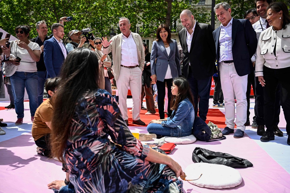 5月26日,在法国巴黎香榭丽舍大街,巴黎市长伊达尔戈来到户外野餐会现场。新华社/法新