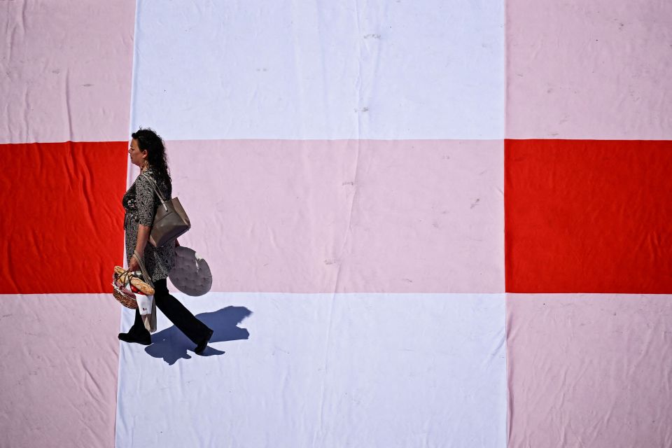 5月26日,在法国巴黎香榭丽舍大街,一名女子参加户外野餐会。新华社/法新
