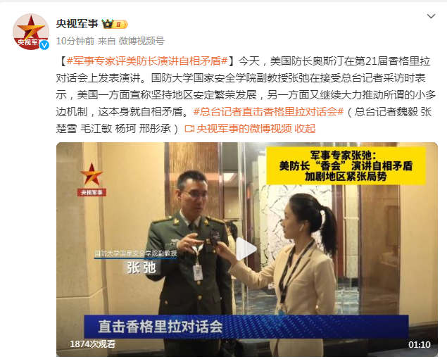 军事专家张弛:美防长“香会”演讲自相矛盾,加剧地区紧张局势