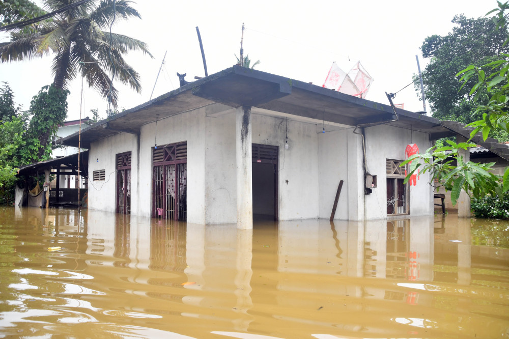 6月3日,在斯里兰卡科伦坡,房屋被洪水包围。新华社发(阿吉特·佩雷拉摄)