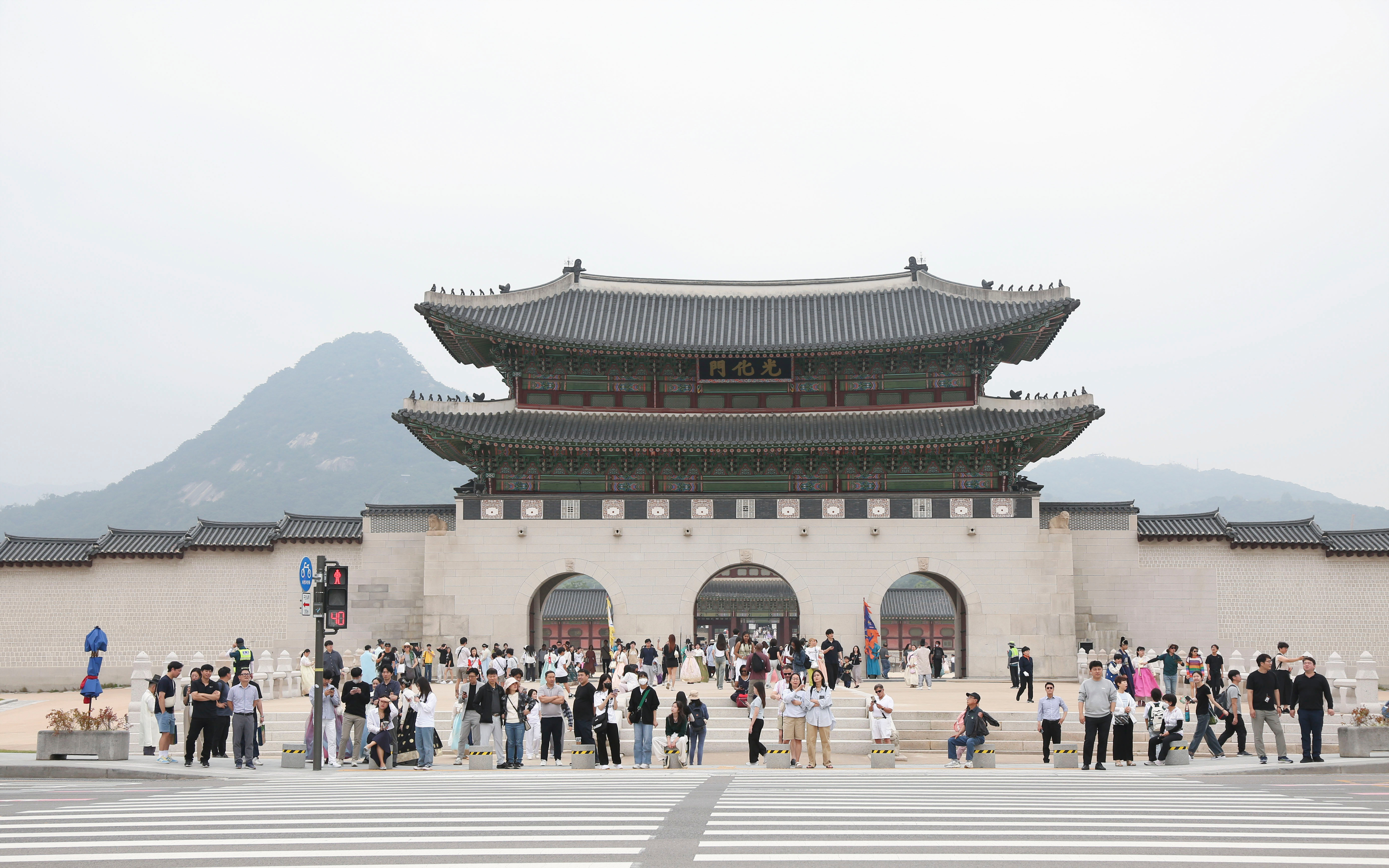 5月24日,游客在韩国首尔市中心的光化门广场参观。新华社记者姚琪琳摄