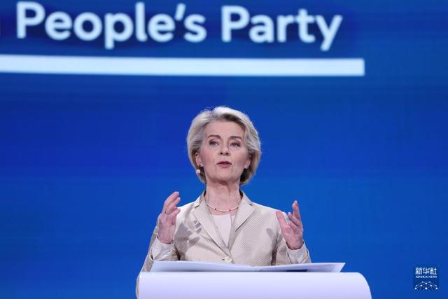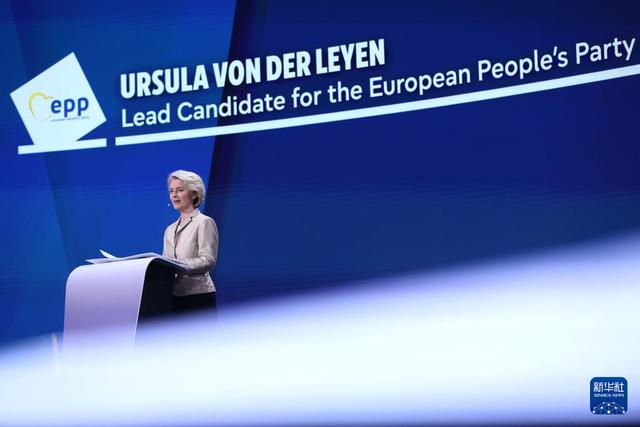 6月9日,在比利时布鲁塞尔,欧洲人民党领衔候选人冯德莱恩在欧洲议会发表演讲。新华社记者 赵丁喆 摄