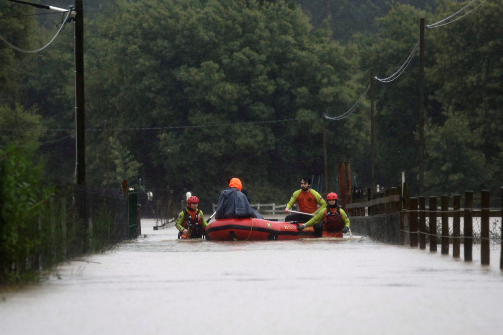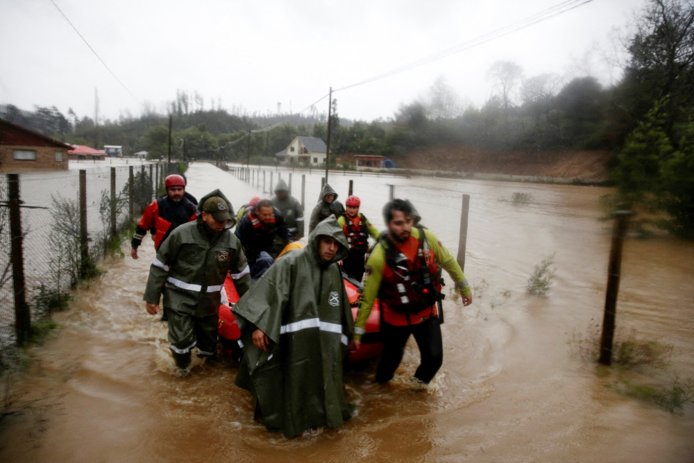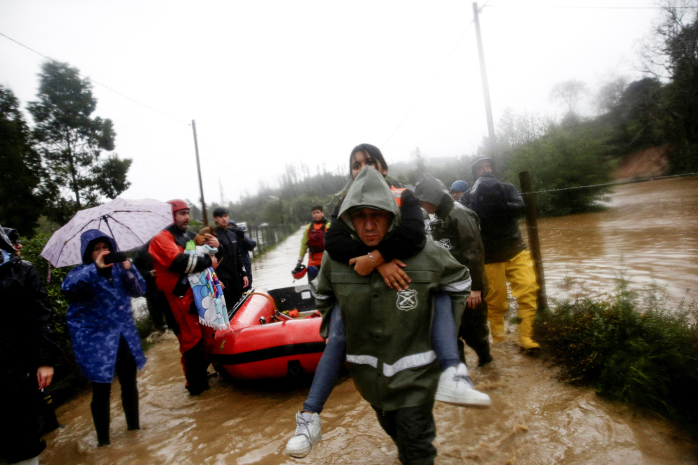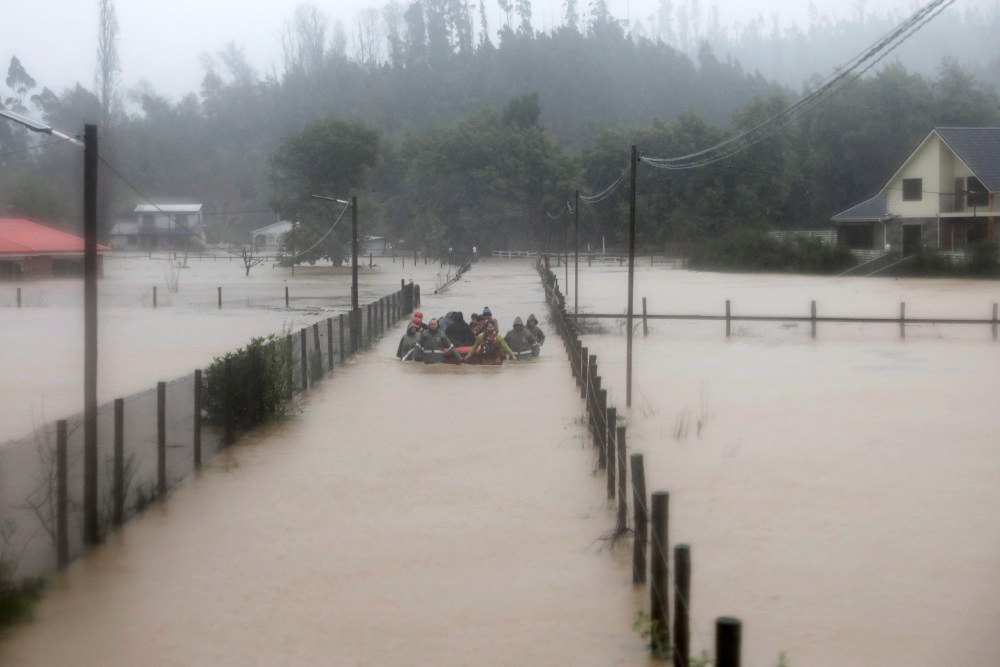 6月12日,人们在智利康塞普西翁的洪水中撤离。新华社/路透