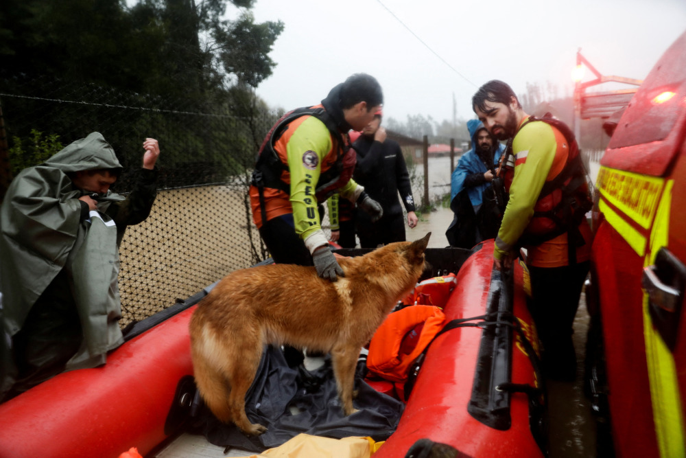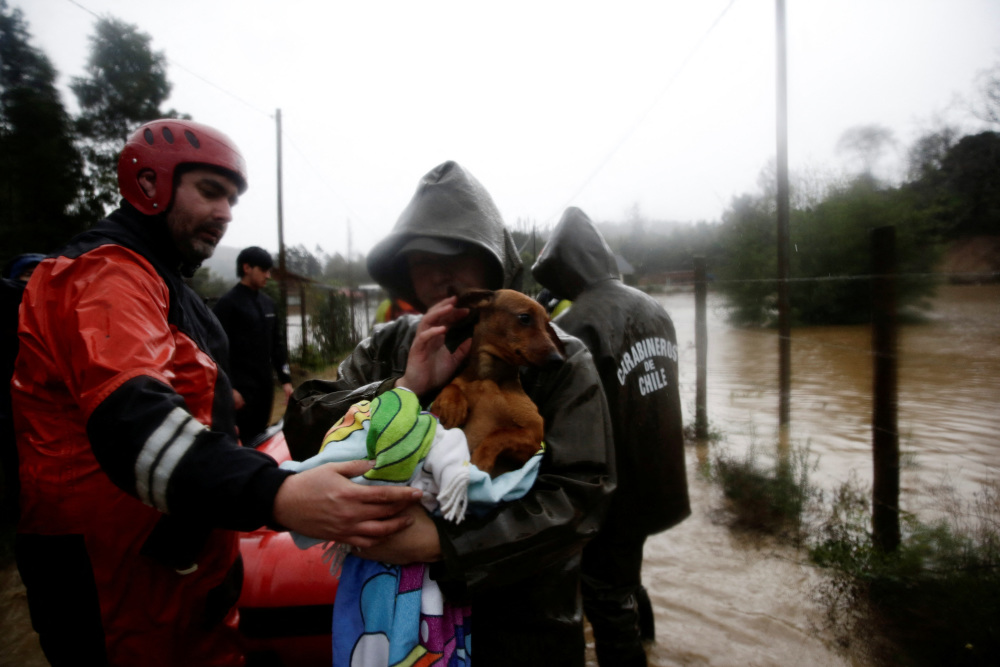 6月12日,工作人员在智利康塞普西翁救援一条狗。新华社/路透