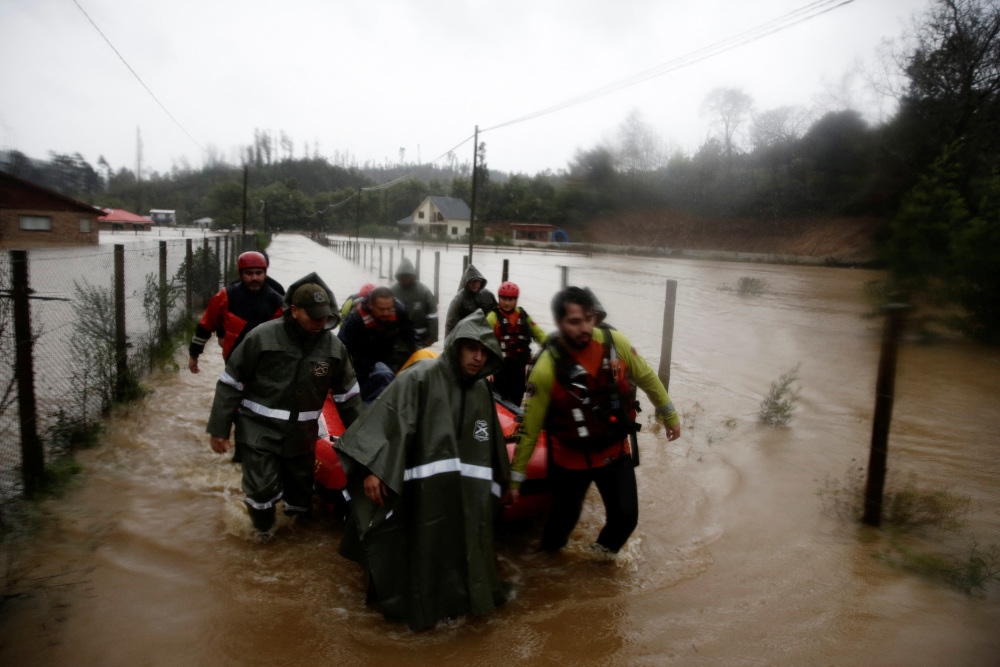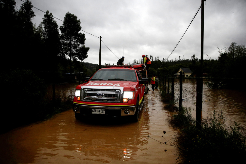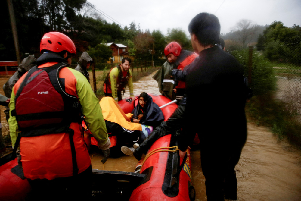 6月12日,工作人员在智利康塞普西翁救援居民。新华社/路透