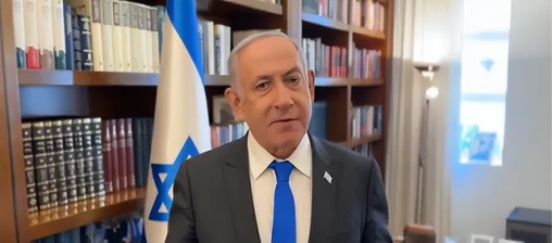 6月18日,内塔尼亚胡在一段视频中讲话,谈及“美方扣留向以色列提供的武器和弹药”一事。图源:以色列总理办公室社交媒体账号