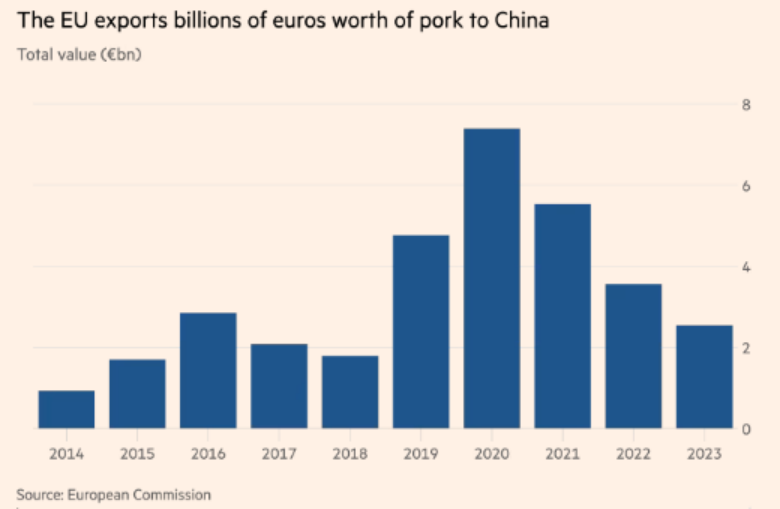 19日,英国《金融时报》发表评论文章称,中国针对欧盟猪肉行业的最新举措,精准地击中了欧盟的软肋。