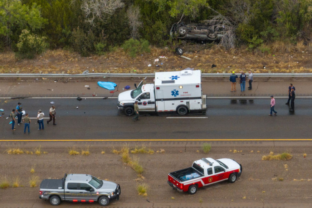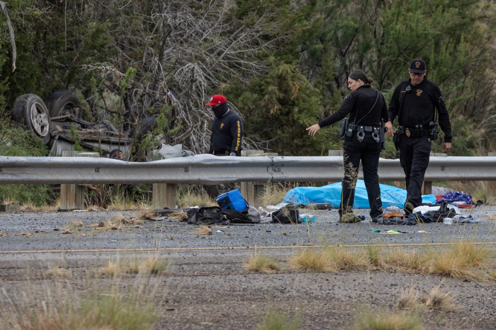 6月21日,工作人员在美国新墨西哥州本特的车祸现场展开工作。新华社/路透