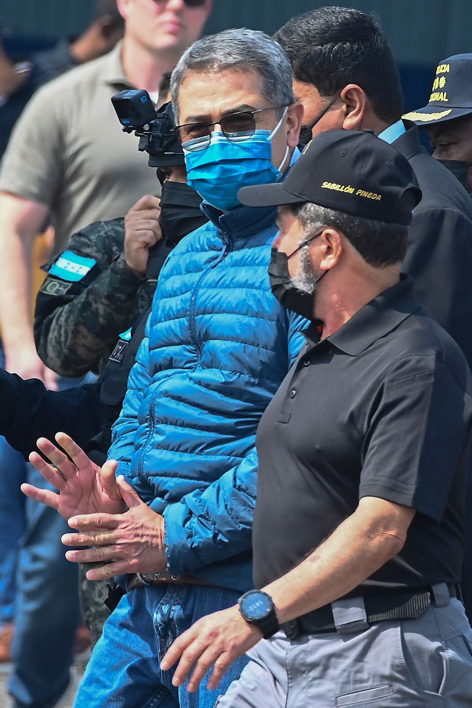 这是2022年4月21日在洪都拉斯特古西加尔巴拍摄的胡安·奥兰多·埃尔南德斯(右二)的资料照片。新华社/美联