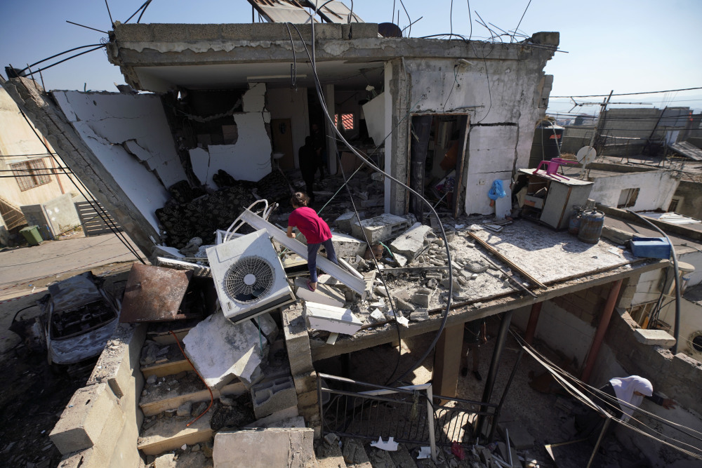 6月12日,在约旦河西岸城市杰宁西北方向的丹村,一名巴勒斯坦人查看在以军突袭中被毁坏的房屋。新华社发(尼达尔·艾仕塔耶摄)