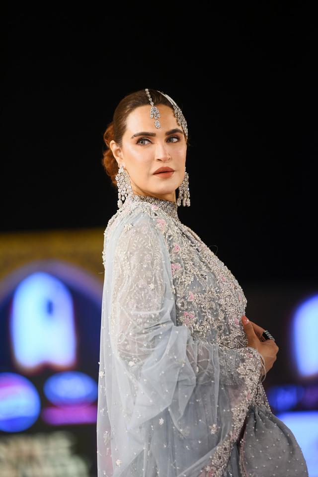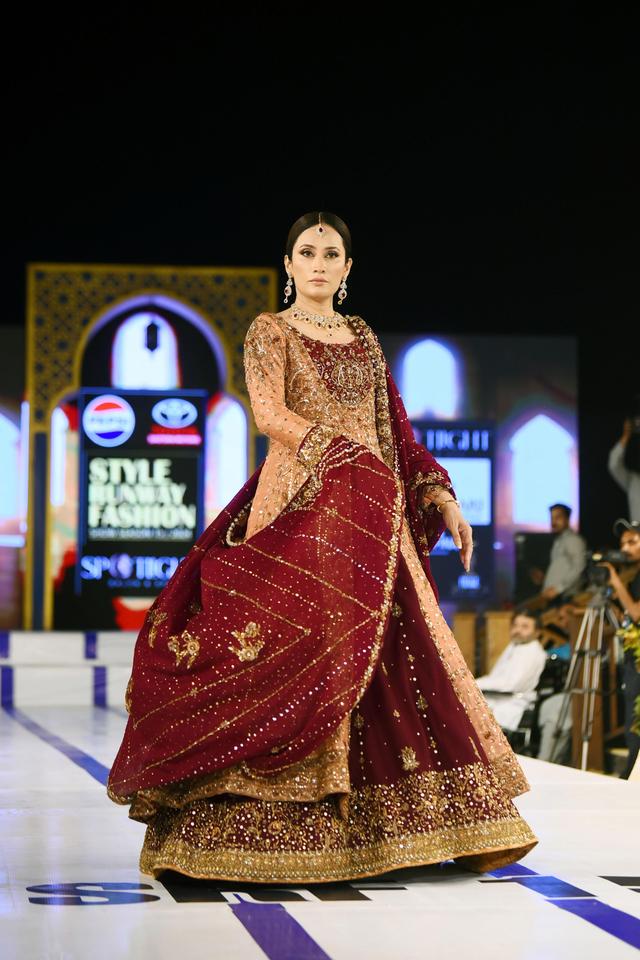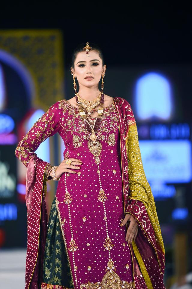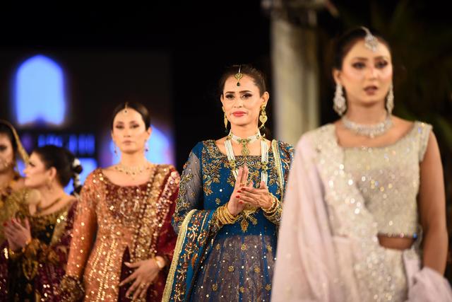7月4日,在巴基斯坦南部城市卡拉奇,模特在当地举行的服装秀上展示巴传统服饰。