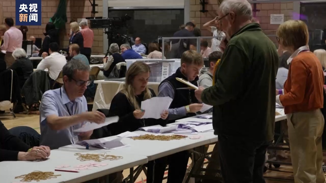 当地时间4日,英国举行议会下院选举。计票结果显示,工党在议会下院选举中赢得超过半数席位,获得选举胜利。(总台记者王梦)