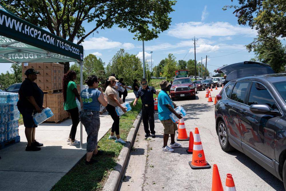 7月9日,在美国得克萨斯州休斯敦,民众领取饮用水。新华社发(陈晨摄)