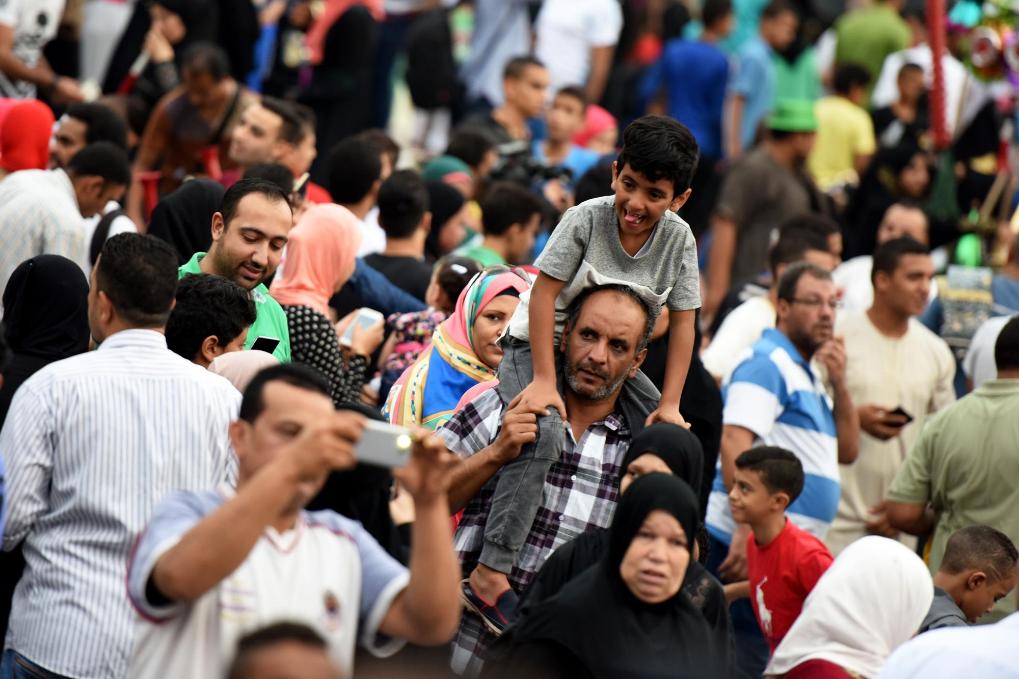 2016年9月12日,在埃及首都开罗,一名小男孩跟随家长参加宰牲节庆祝活动。新华社记者赵丁喆摄