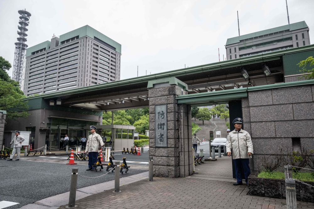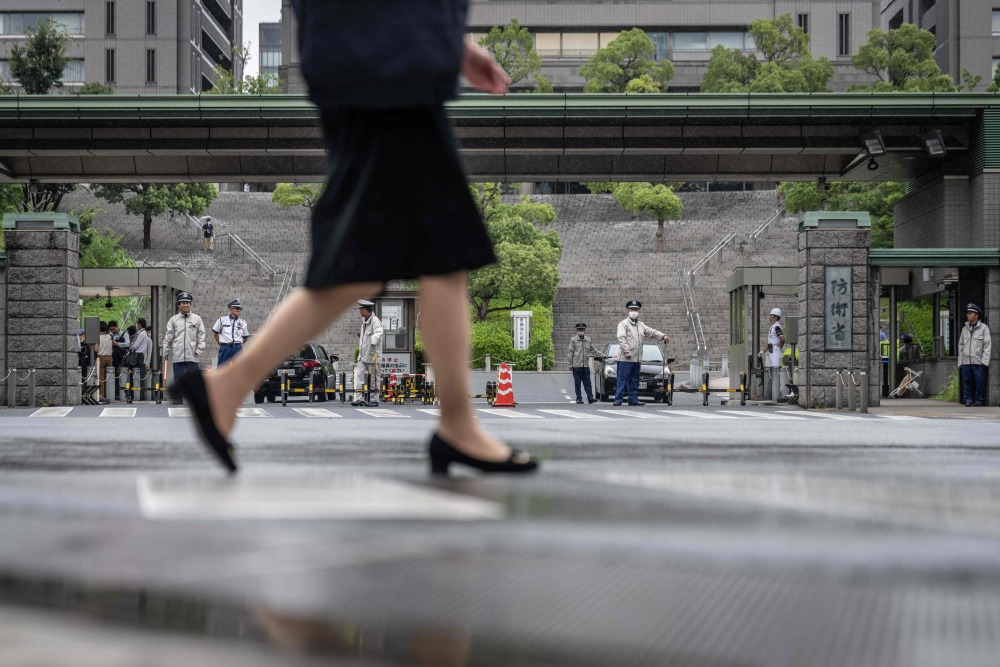 7月12日,行人经过日本东京的防卫省大门。新华社/法新
