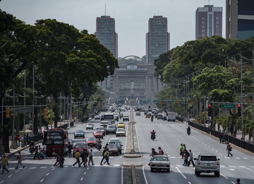 2019年3月15日,车辆在委内瑞拉首都加拉加斯市中心主干道玻利瓦尔大道上行驶。新华社发(萨尔戈多摄)