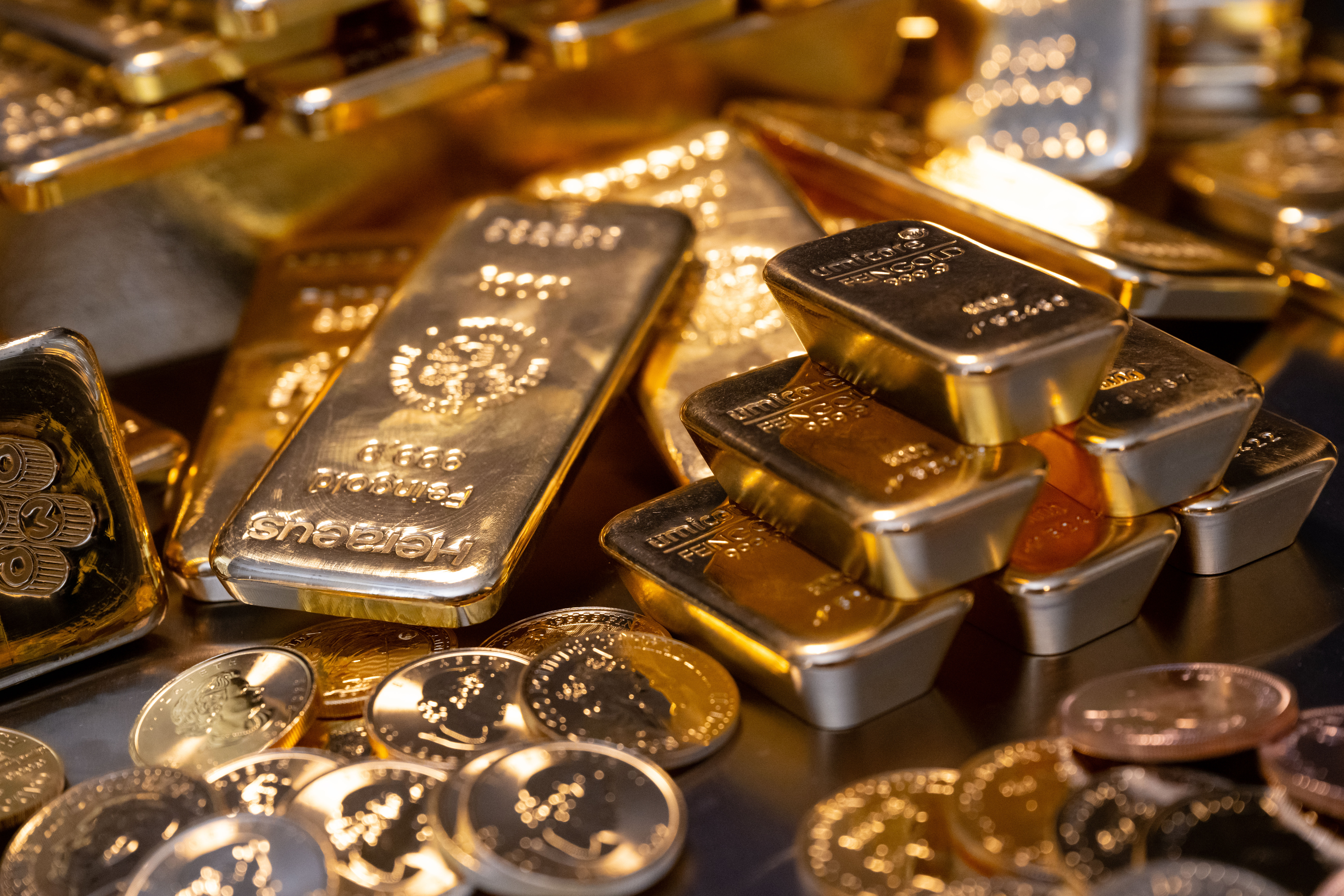 贵金属经销商摆放的金条和金币。(德新社资料图片)