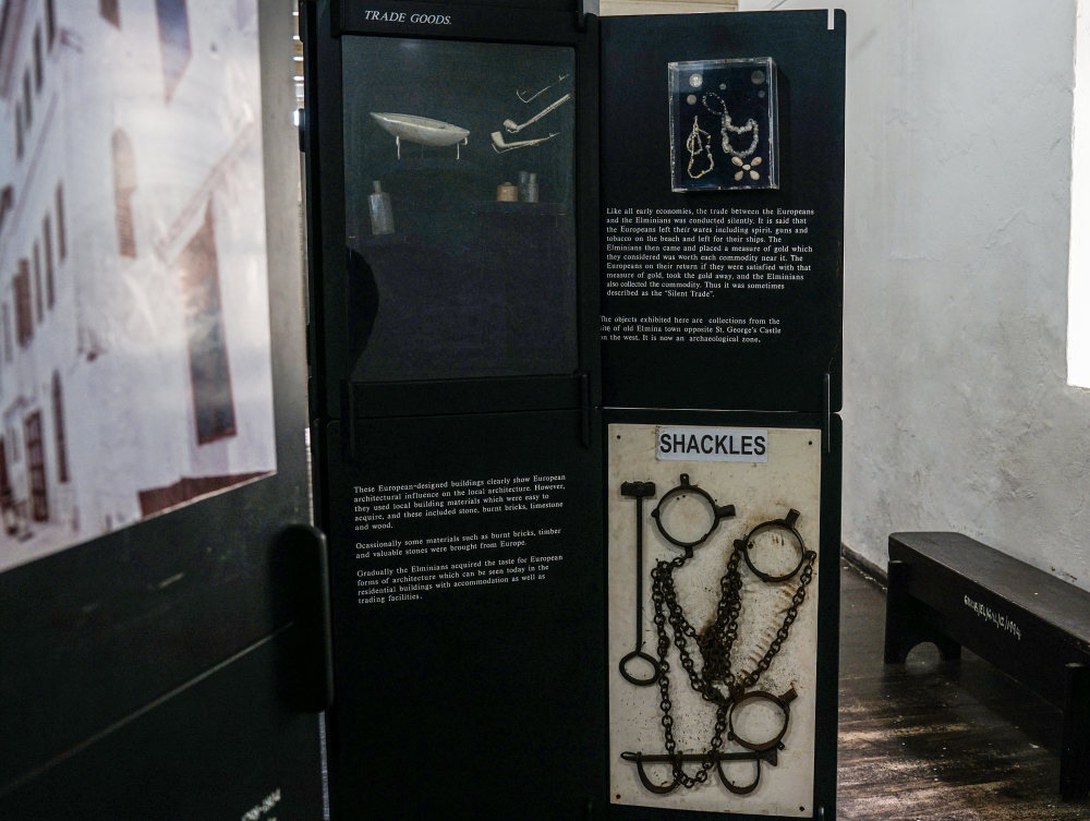 这是6月19日在加纳海岸角埃尔米纳城堡里陈列的有关奴隶贸易的展品。埃尔米纳城堡是第一座位于西非几内亚湾的奴隶贸易所。新华社记者 李亚辉 摄