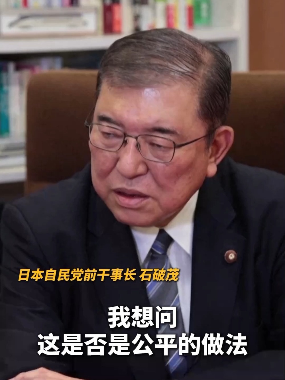 石破茂表示,美国最近对盟友都要进行贸易限制和威胁,他认为这并不是公平的做法。