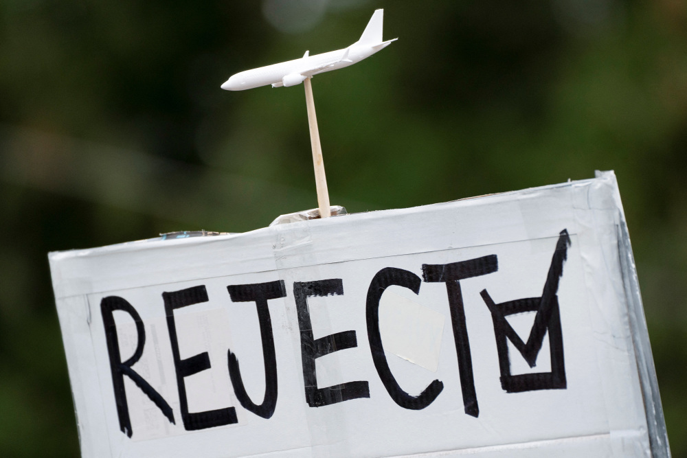 9月12日,在美国华盛顿州伦顿,美国波音公司员工手举标语牌,表示拒绝与公司签订新劳资合同,支持罢工。新华社/路透