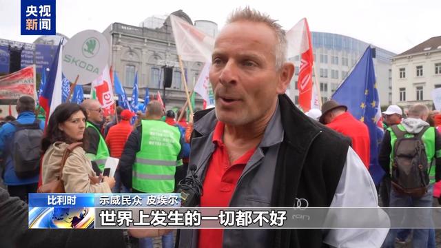 示威组织者 阿伦:由于新冠疫情和随后的俄乌冲突,材料价格上涨,这使得普通工薪阶层,更难负担得起像汽车这样的商品。另外,因为价格上涨,导致需求降低,这是需要考虑的问题,也是我们想传达给欧盟的信息。