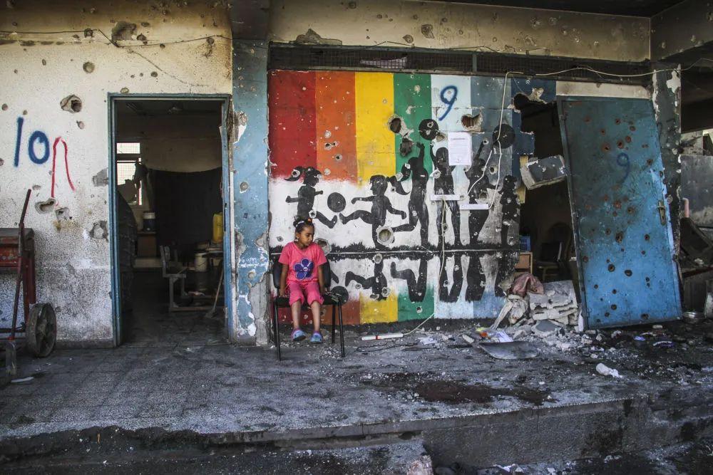 9月21日,在加沙地带北部加沙城,一名女孩查看以军袭击后的废墟。新华社发(马哈茂德·扎基摄)