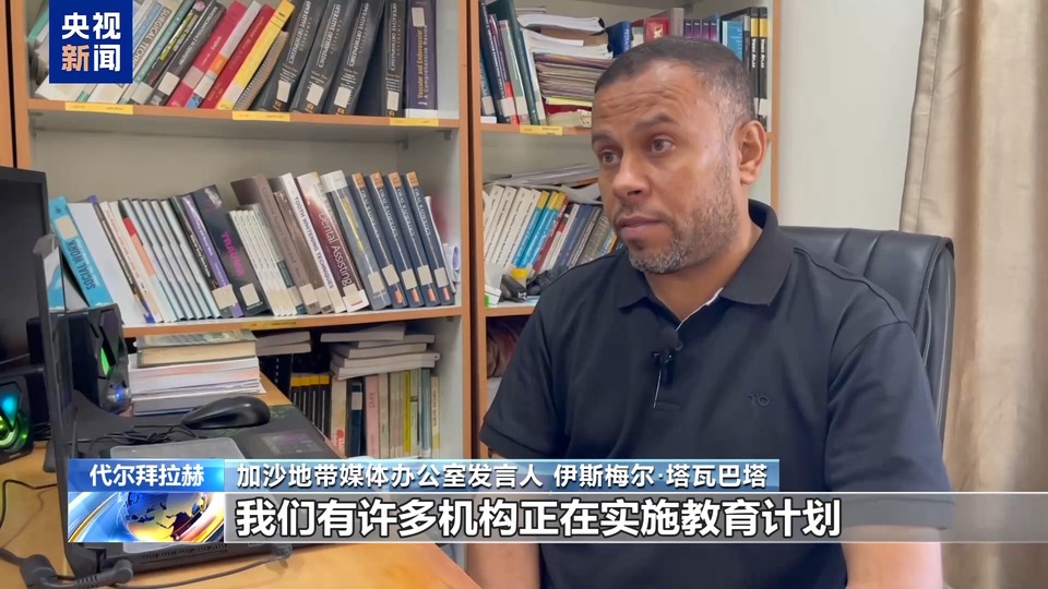 加沙地带媒体办公室发言人 伊斯梅尔·塔瓦巴塔:我们有许多机构正在实施教育计划,但这些计划无论如何都不能取代正式的主流的教育体系,即学生回到学校接受正规教育。我们再次呼吁结束战争,停止针对教育系统的攻击,让学生能够重返学校学习。