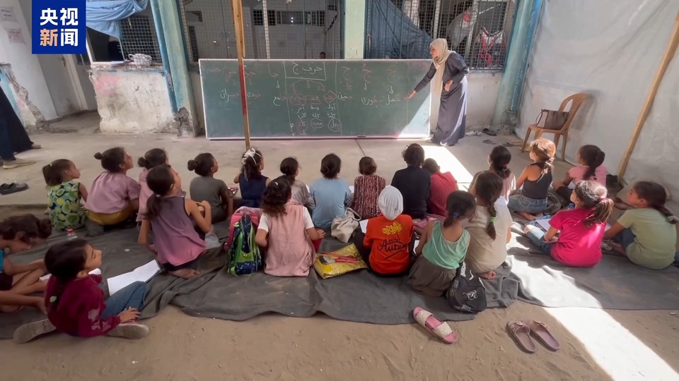 总台报道员 马格迪·阿斯利姆:在加沙地带,学生们不再像以前那样从老师那里获得传统的教育,老师也不再是过去的样子,师生双方都在学习生存之道,以便继续生活,并尽可能重回正常的生活方式。一些教师和志愿者在联合国近东救济工程处的支持下,怀着对美好未来的期望,决定恢复教学秩序。