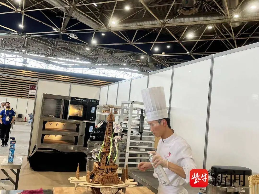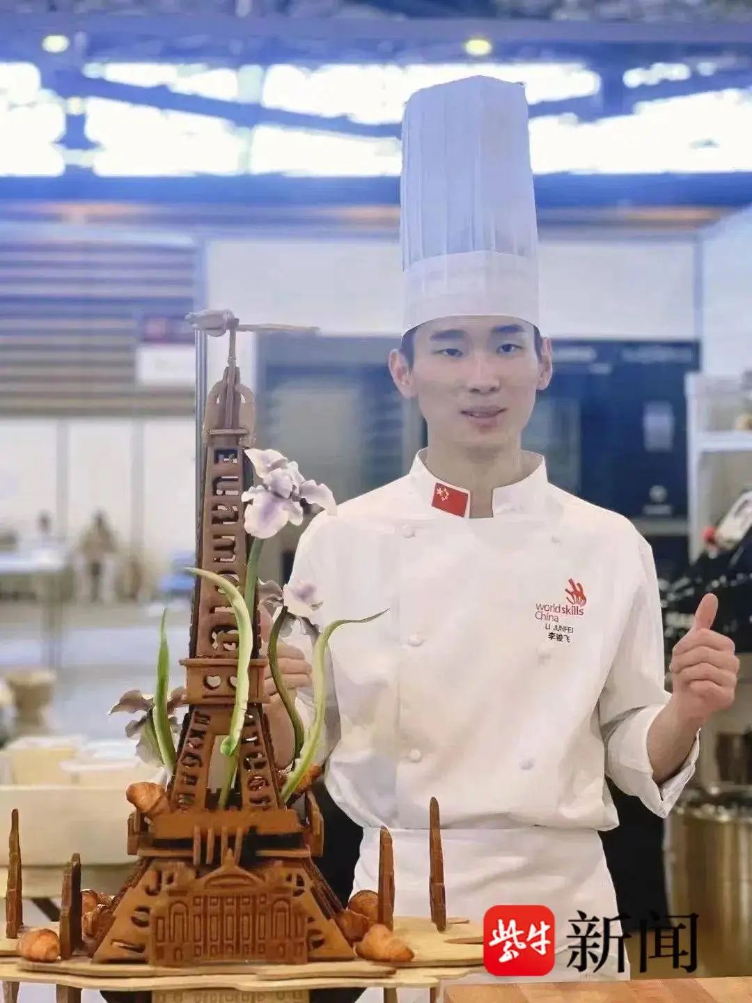 用中国传统建筑的榫卯结构,把面包做成80厘米高的“埃菲尔铁塔”造型,细节精致细腻到让人惊叹,这样的完美之作出自苏州一位“00后”小伙——李骏飞之手。在刚刚结束的第47届世界技能大赛上,来自苏州的李骏飞,作为中国队选手,凭借精湛的烘焙技艺,制作出独具创意的“埃菲尔铁塔”面包,赢得评委一致好评,一举夺冠。9月24日,刚从法国里昂赛场归来的中国队选手李骏飞,向记者讲述了参加世界技能大赛夺冠背后的故事。