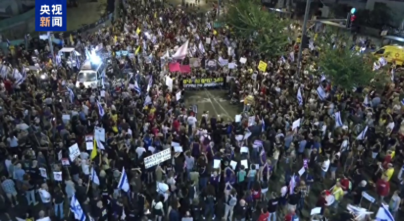 当地时间10月5日,以色列特拉维夫爆发抗议活动,数千民众走上街头,抗议以色列总理内塔尼亚胡,呼吁以色列政府与哈马斯达成停火协议,促成被扣押人员获释。