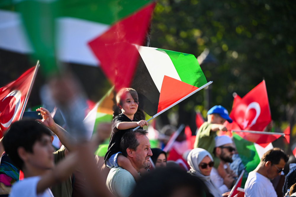8月3日,民众在土耳其伊斯坦布尔参加集会声援巴勒斯坦。新华社记者刘磊摄