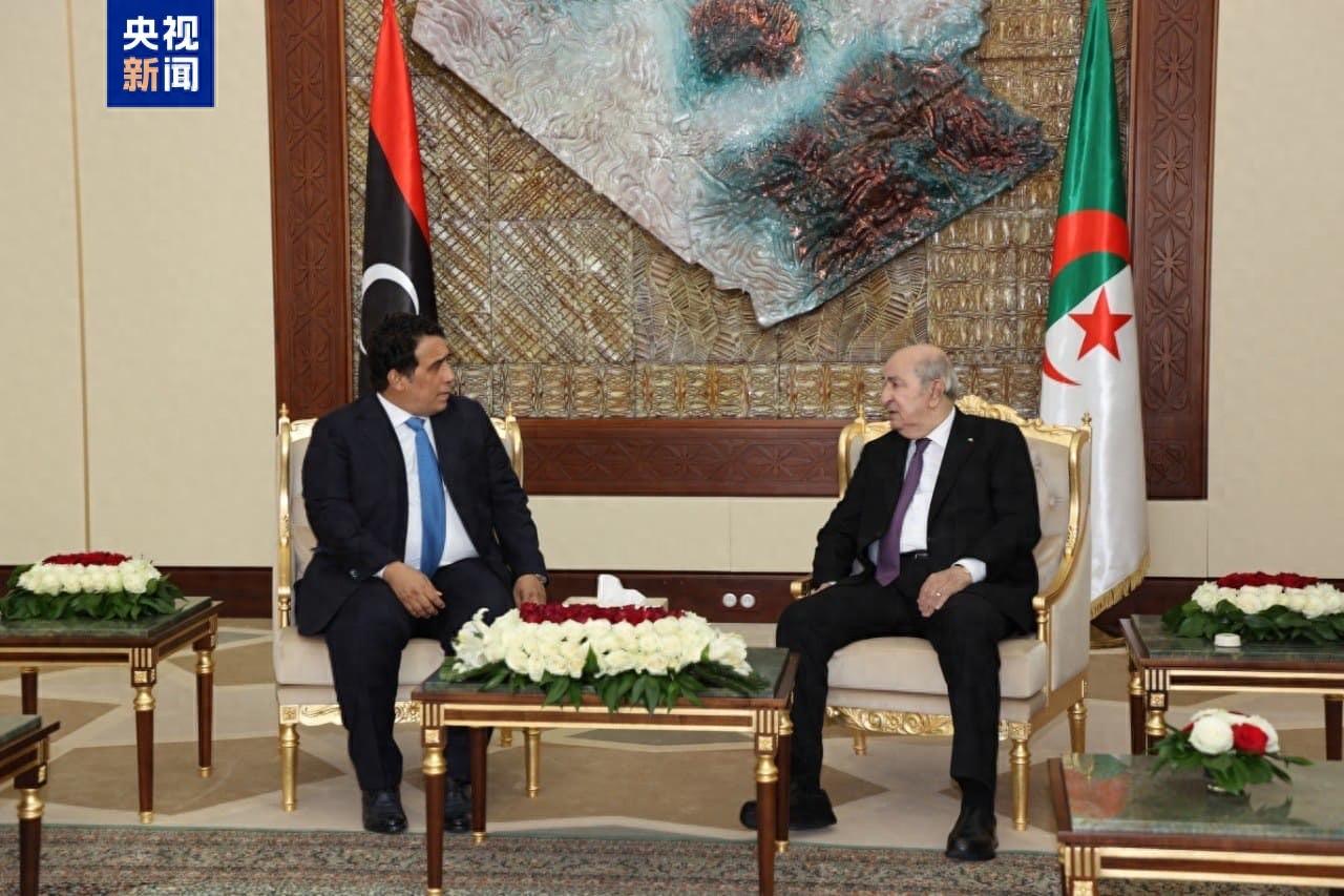 当地时间10月16日,阿尔及利亚总统特本会见了到访的利比亚总统委员会主席曼菲。
