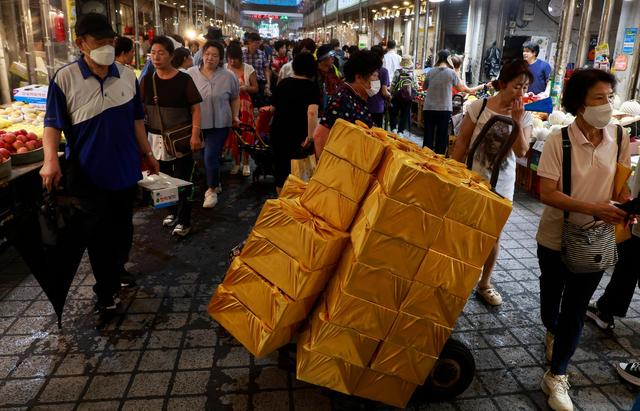 9月12日,民众在韩国首尔的一处市场采购。新华社发(全休相摄)