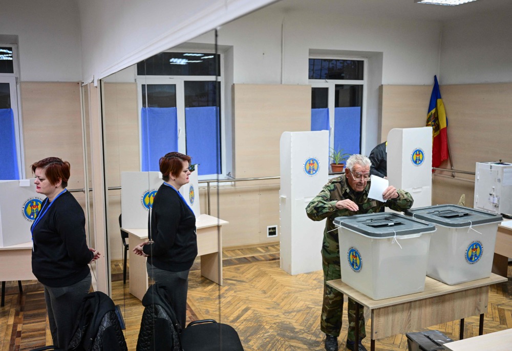 10月20日,在摩尔多瓦基希讷乌,选民在投票站投票。新华社/法新