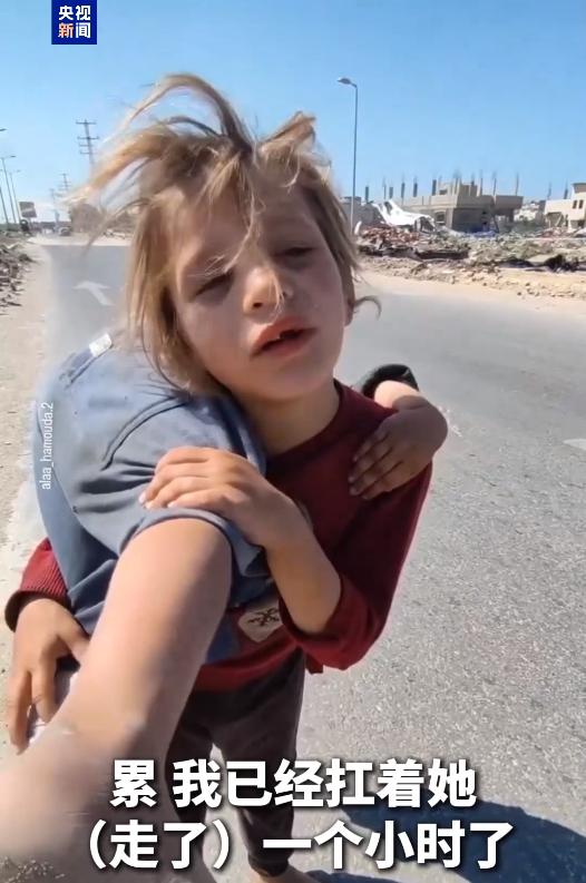近日,半岛电视台等多家媒体在社交平台转发了一段由巴勒斯坦记者阿拉·哈穆达拍摄的视频。视频中,一个看起来只有七八岁的加沙女孩,用瘦弱的肩膀扛着自己受伤的妹妹,光着脚在路上走。小姑娘对记者说,她就这么扛着妹妹走了一个小时,差不多两公里,只为能让妹妹有地方接受救治。