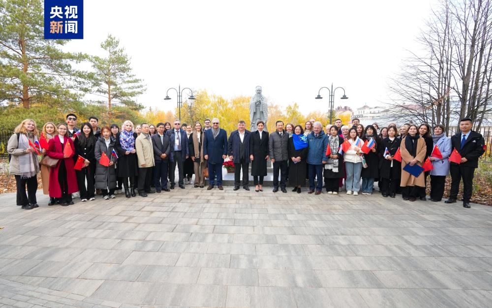 当地时间10月23日,孔子雕像在俄罗斯喀山联邦大学落成。