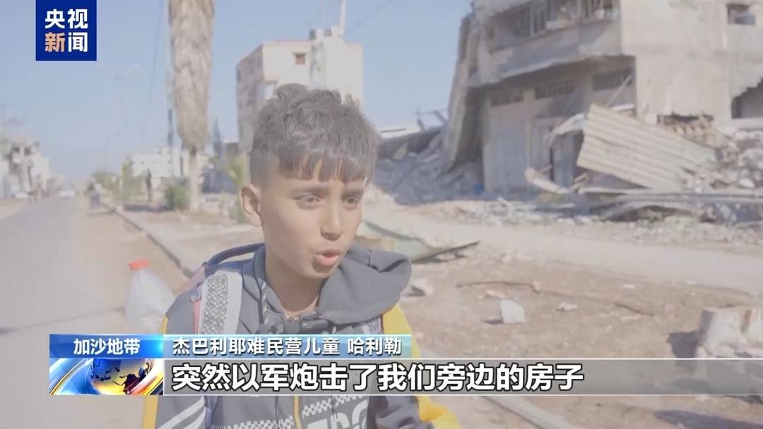 杰巴利耶难民营儿童哈利勒:以军坦克就停在我们家门前。我们正在睡觉,突然以军炮击了我们旁边的房子。我们不知道该怎么做,以军就突然冲进社区然后到处开炮。