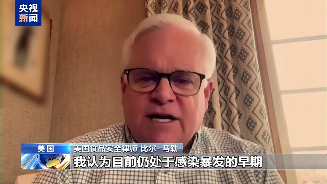 美国食品安全律师比尔·马勒:我认为目前仍处于感染暴发的早期。美国疾控中心称,其传播速度快、情况危险。不幸的是,我认为更多人会被发现感染。