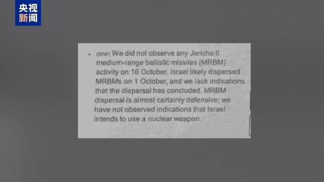文件中提到,美国没有看到以色列计划使用核武器的迹象。美国有线电视新闻网报道称,这暗示以色列实际上拥有核武器。