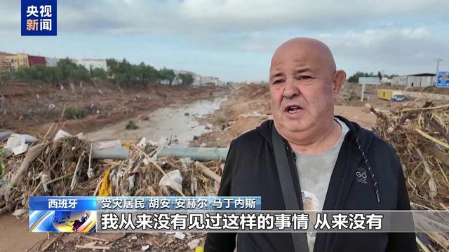 受灾居民 胡安·安赫尔·马丁内斯:我从来没有见过这样的事情,从来没有。河水泛滥并不罕见,但像这样波及大量周边地区的情况我从来没有见过。