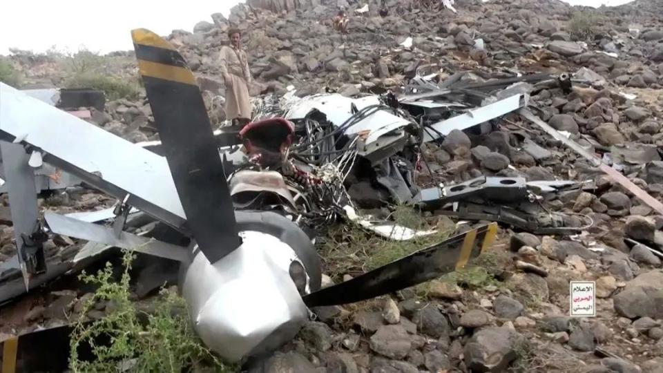 8月4日获得的一段未注明日期的视频截图显示,胡塞组织声称击落了一架美国MQ-9无人机。(路透社)
