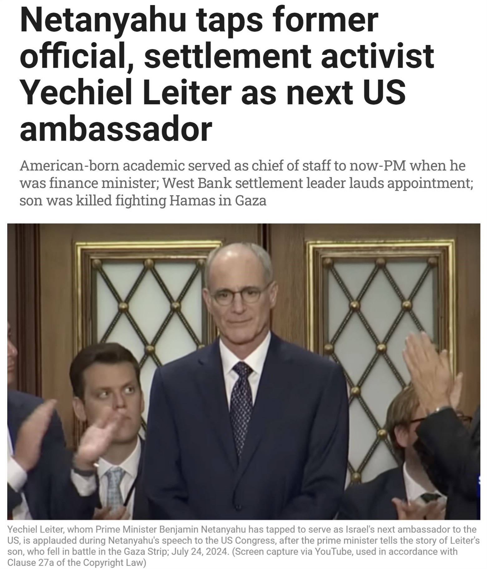 当地时间8日,以色列总理内塔尼亚胡宣布任命耶希尔·莱特为新任以色列驻美国大使。