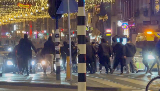 当地时间11月8日,荷兰阿姆斯特丹,以色列球迷和荷兰本地青年在阿姆斯特丹中央车站附近发生冲突。图源:央视新闻